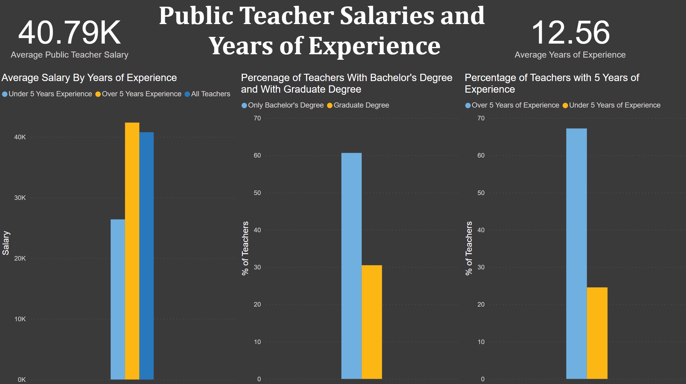 Shows public school teacher salary figures by years of experience. Also shows amount of education and years of experience for teachers.